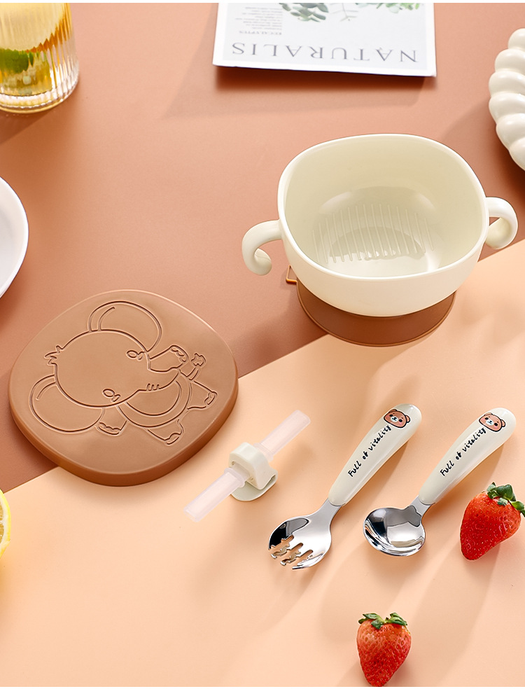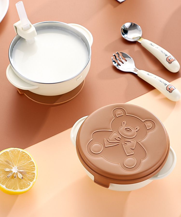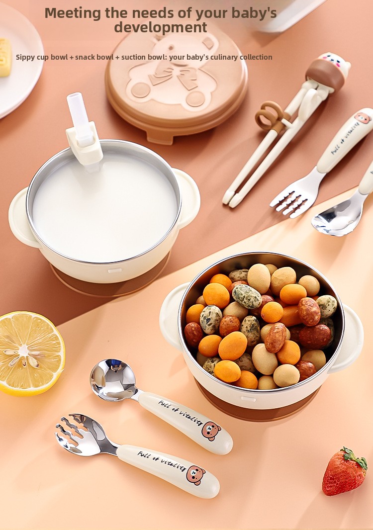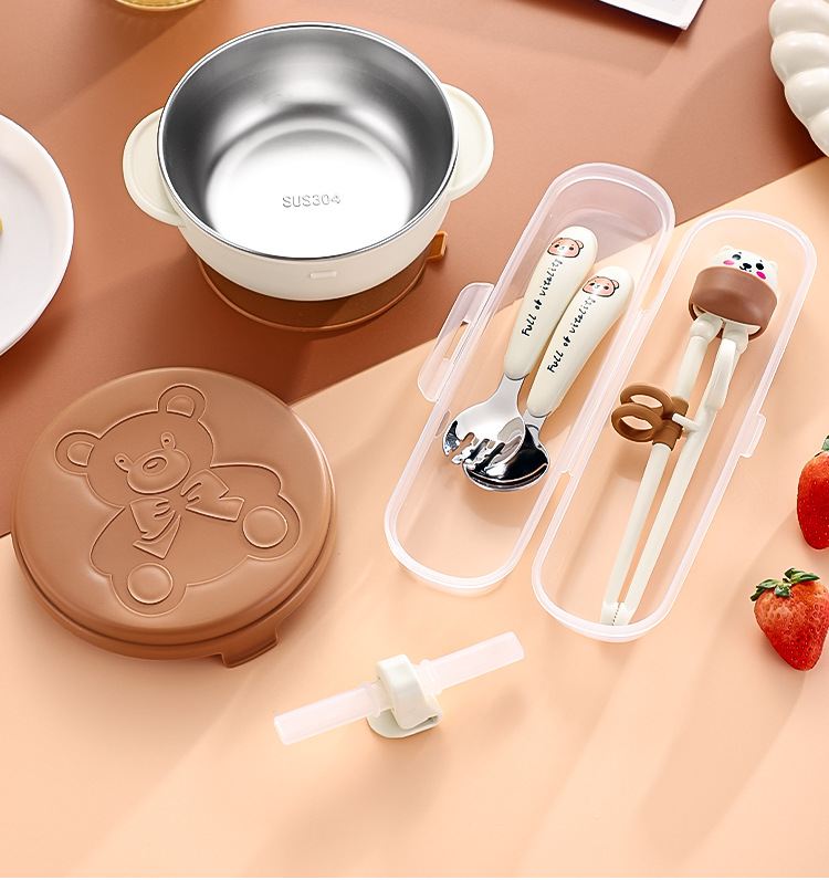 Set Components: Bowl, spoon, fork, chopsticks, suction base, training accessories (varies by configuration)